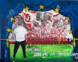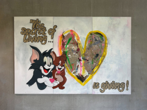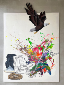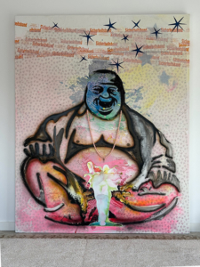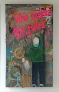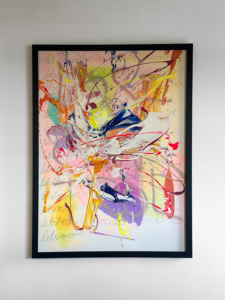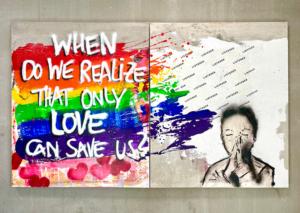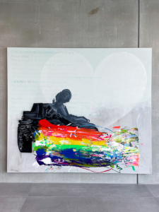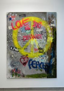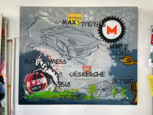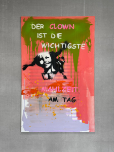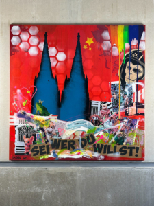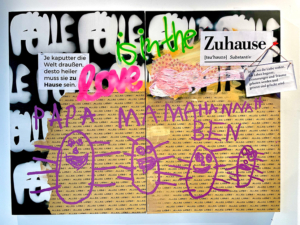 Material: Leinwand / Acryl / Collage / Sprühfarbe (Druck)