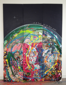 Material: Leinwand / Acryl / Collage / Sprühfarbe / Strukturpaste / Holz